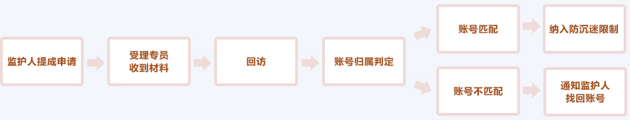 在监护人发现被监护人有沉溺佳阅互娱娱乐平台的情况下,监护人可向游家公司申请发起未成年人家长监护机制。 监护人需亲自通过邮寄方式 向我司提供有效材料,向游家公司提出未成年人账户监控的申请。在收到邮件后,我司即开始启动监护机制审核流程,首先进入疑似账号身份确认期。